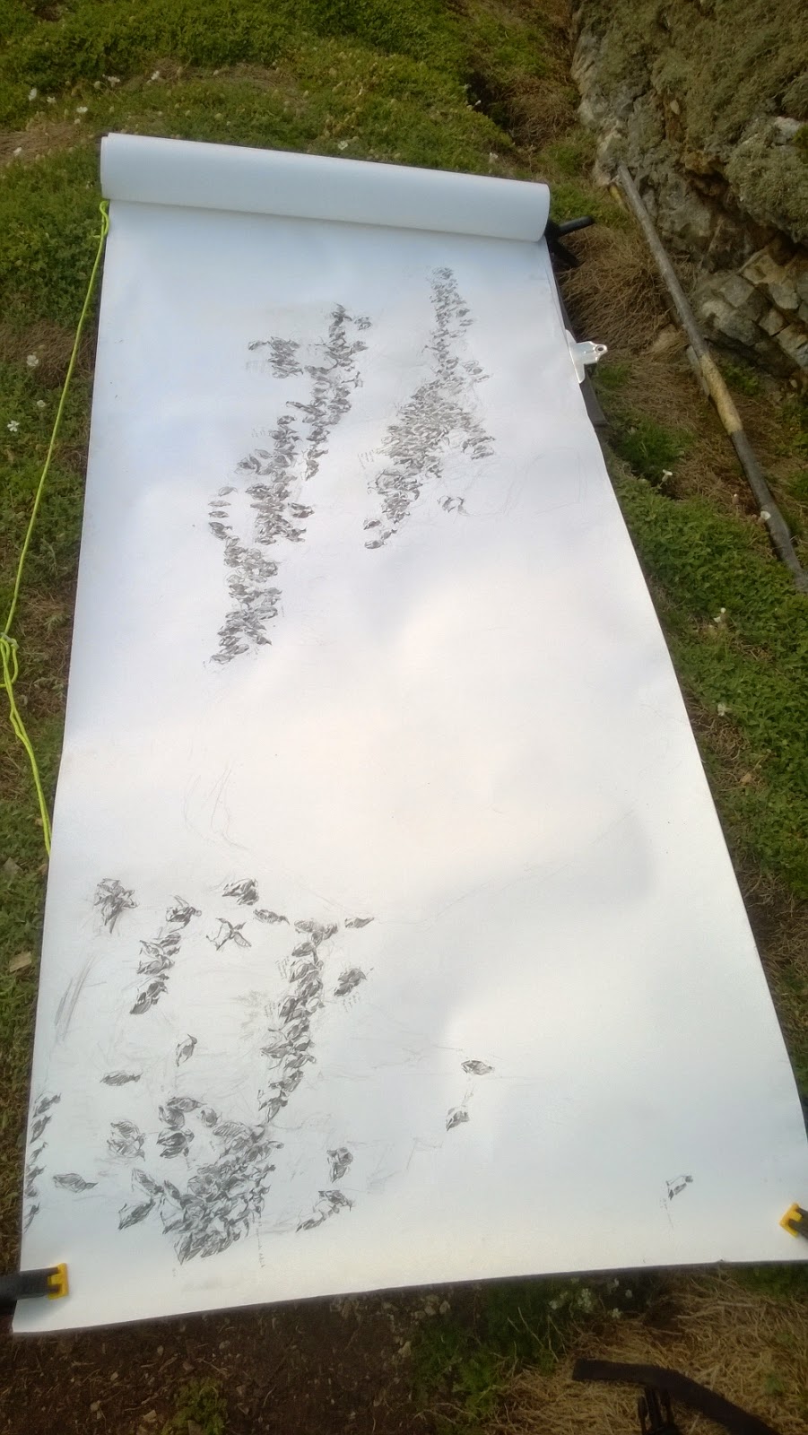 After this I move further down the Wick to add another line to yesterday's long ledge time-lapse drawing. I wanted to include midday because this is supposedly a quieter period for the colonies in comparison to the morning and evening periods I already had represented in the drawing.